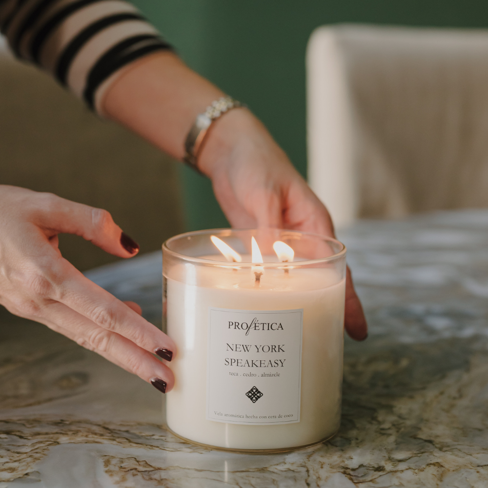 Todas nuestras velas son hechas 100% a mano, elaboradas con cera de coco de origen natural, y fragancias aromáticas libres de ftalatos, las cuales cuentan con certificación IFRA, garantizando sean seguras y limpias para el medio ambiente y el uso humano. Utilizamos mechas de algodón encerado sin metal para un quemado limpio.